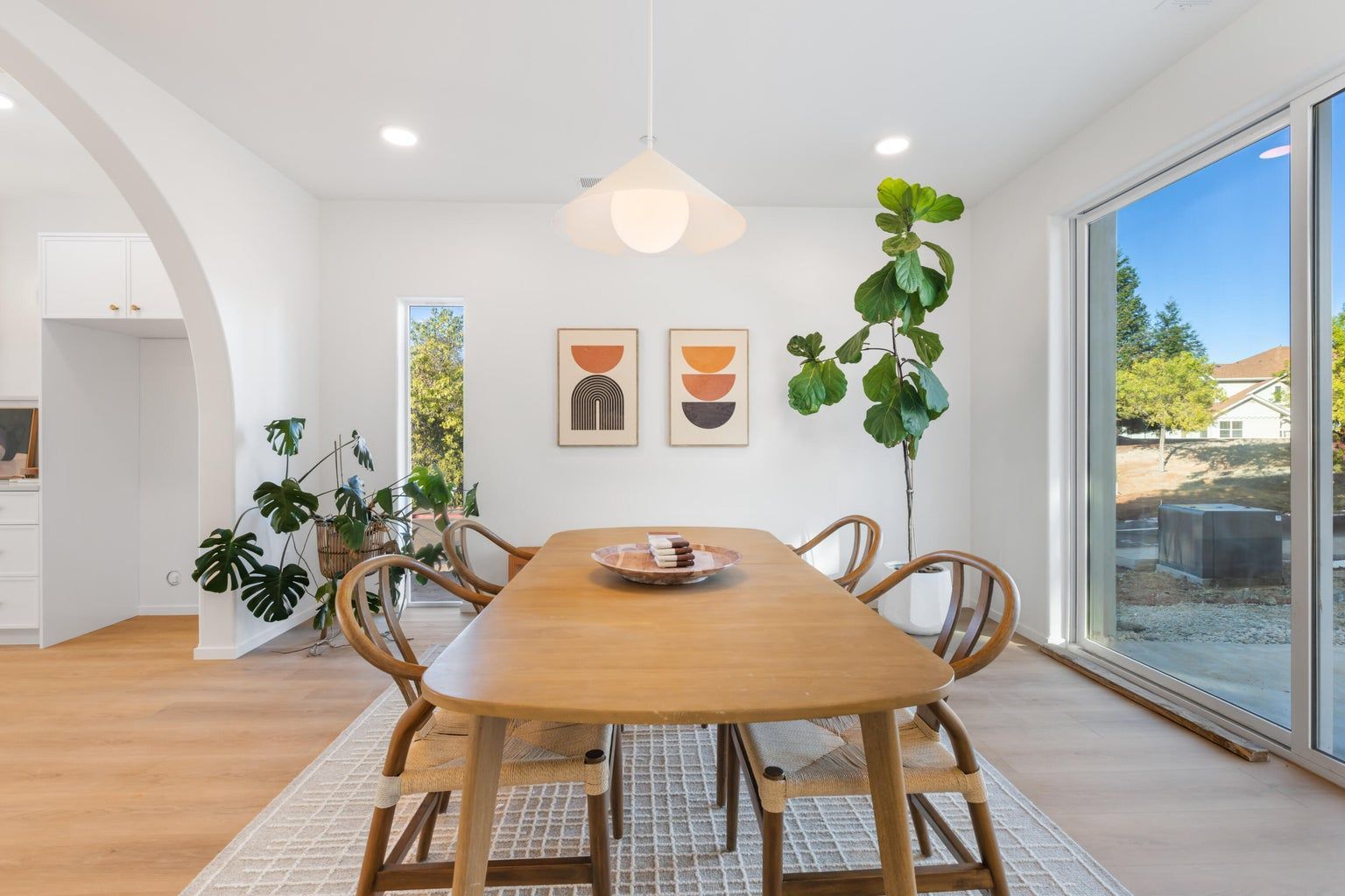 Located just minutes from downtown, the Pebbles development in West Redding is set to redefine modern living with its striking Scandinavian-inspired architecture. This stunning home stands out not only for it's unique design but also for it's thoughtful layout, featuring 5 bedrooms, 3 baths, and a versatile flex room on the main floor to suit your lifestyle needs. With a bright open kitchen including a walk-in pantry, high end finishes throughout, tons of natural light, oversized master suite with a large closet, modern light fixtures in every room, and so much more this a home like you have never seen before. Additional it features a ''California Garage,'' offering dual garage doors—one side for your vehicle and the other opening to a seamless indoor/outdoor recreation and lounging area that connects you to your backyard. This home is equipped with solar power, designed to maximize energy efficiency while maintaining the perfect blend of style and sustainability. These homes are not just a place to live—they're built to elevate the way you experience life.